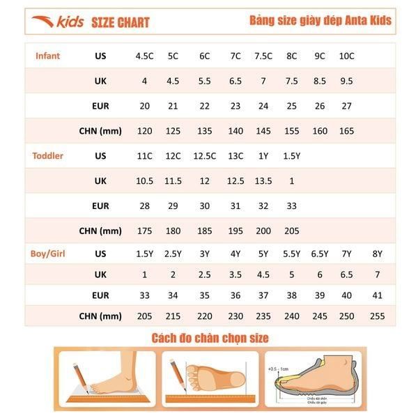 So sánh với bảng size ANTA Kids.